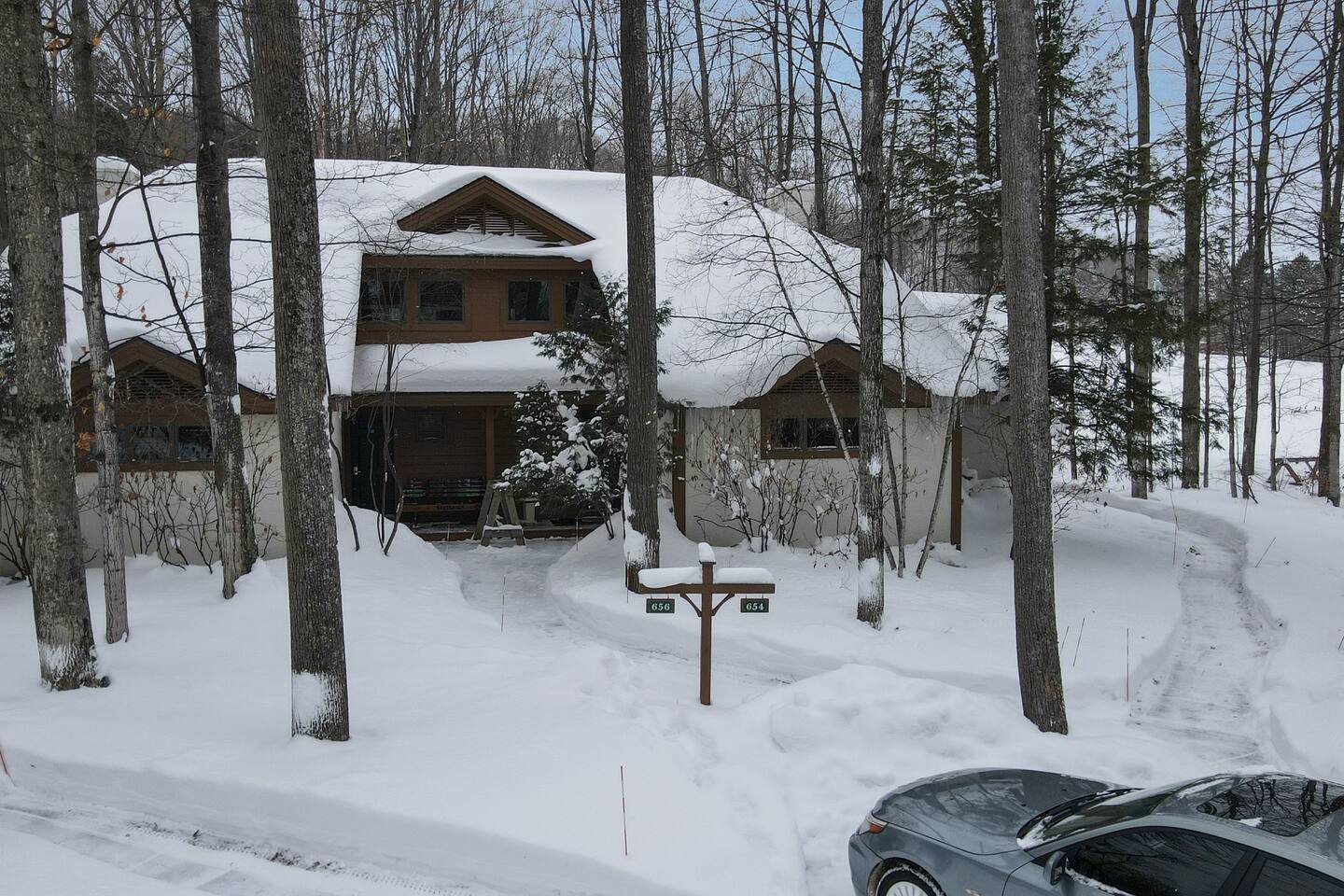 Parking is big enough for 2 vehicles, if you have more they can be parked short walk away at the lodge. Walking to the lodge is just a few minutes, or biking is also popular in the summertime. A Shuttle service is also available and is free.
