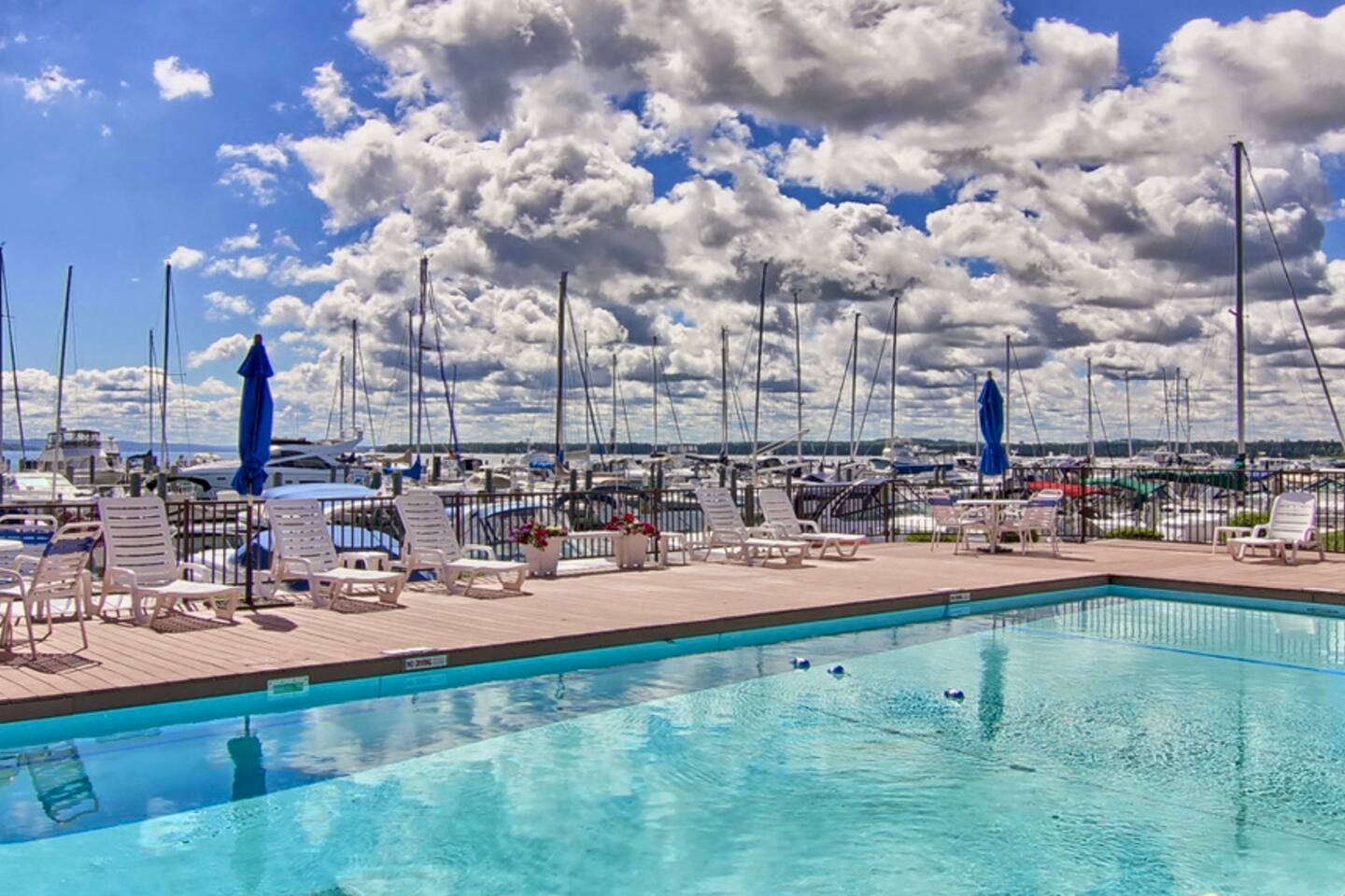 A waterside balcony overlooking the Northwest Yacht Marina, ideal for morning coffee or evening sunsets.