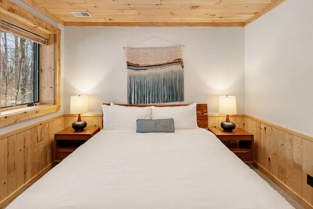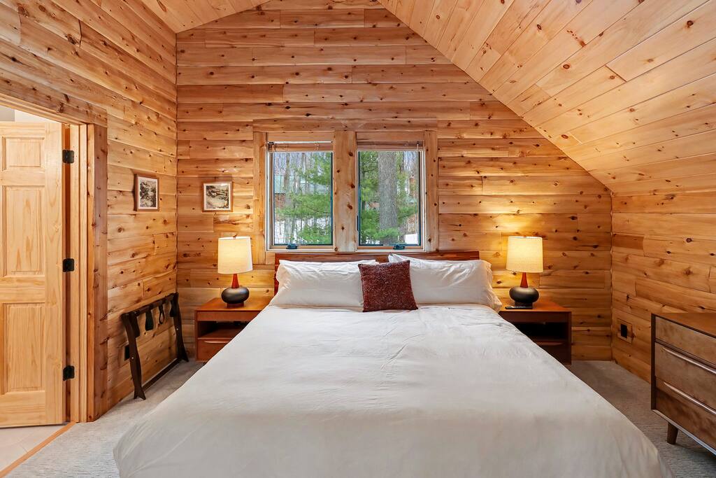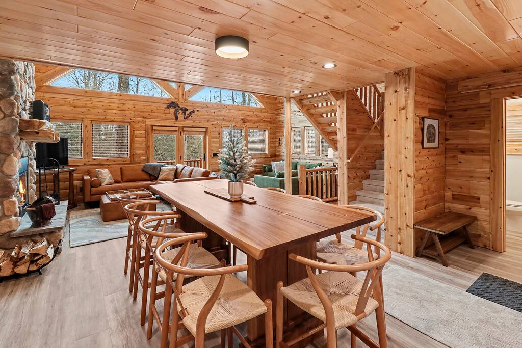 Surrounded by snow-dusted woods at Boyne Mountain Resort, this newly rebuilt charmer is a warm winter retreat. Featuring 3 bedrooms, 3.5 bathrooms, brand-new furnishings with a cozy mid-century vibe, it’s perfect for unwinding after the slopes. A spacious living area—unique among nearby cabins—offers ample seating for all. Enjoy the outdoor deck with a private hot tub and two dedicated parking areas for easy winter arrivals.