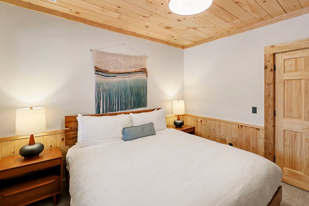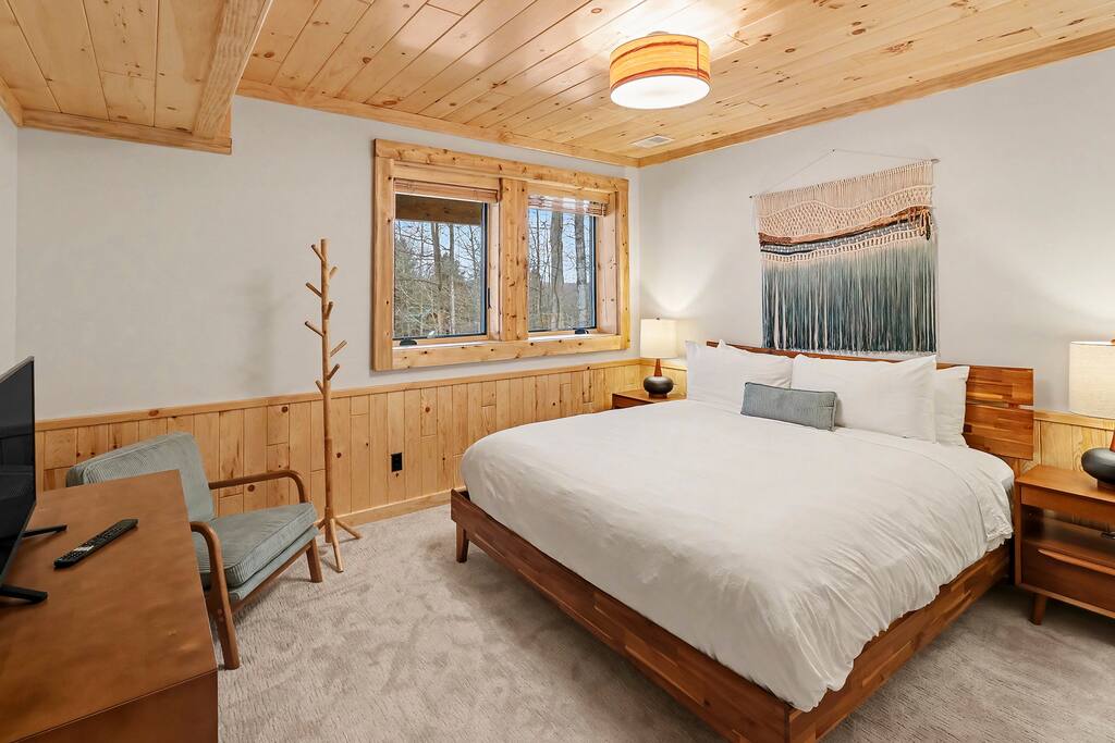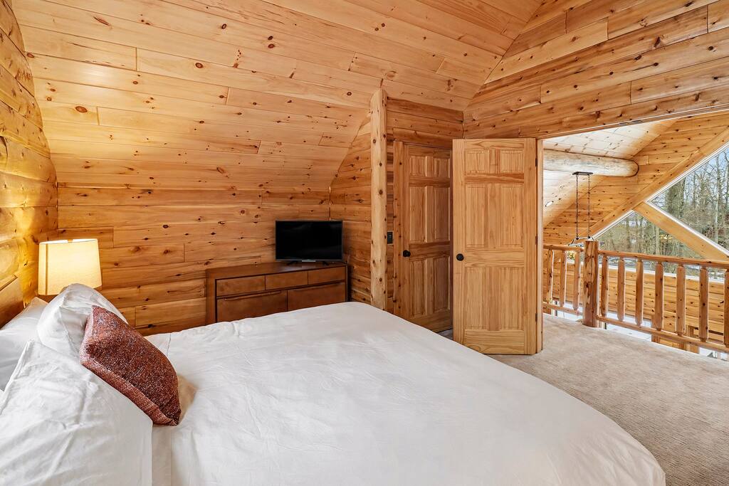 Located in the upper loft, this bedroom features a king bed, TV, and en suite bathroom.